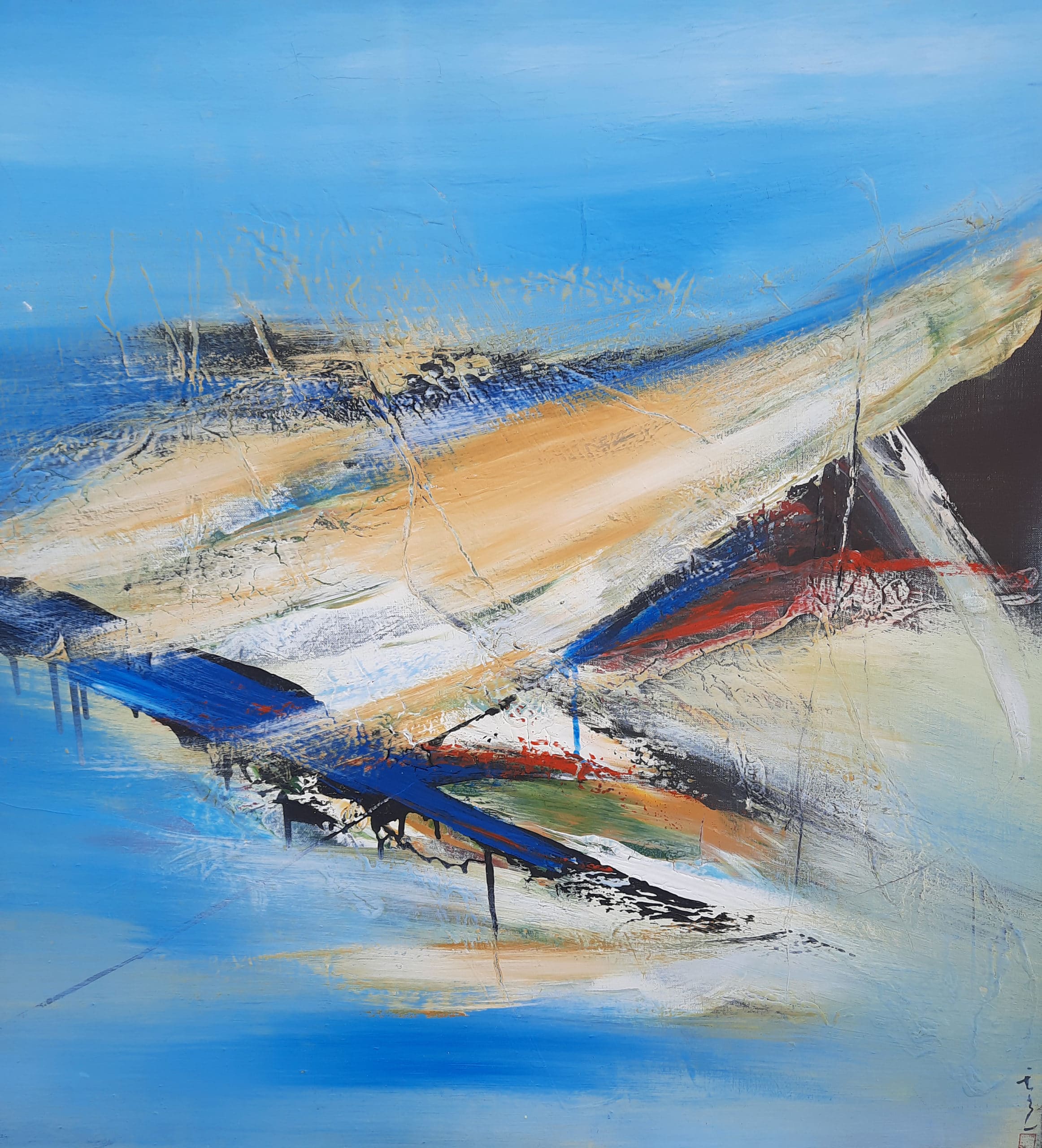 Dieses Gemälde von Prof. Chong Guang Yang aus dem Jahr 1995 zeigt eine informelle Darstellung in der Größe 120 x 120 cm.